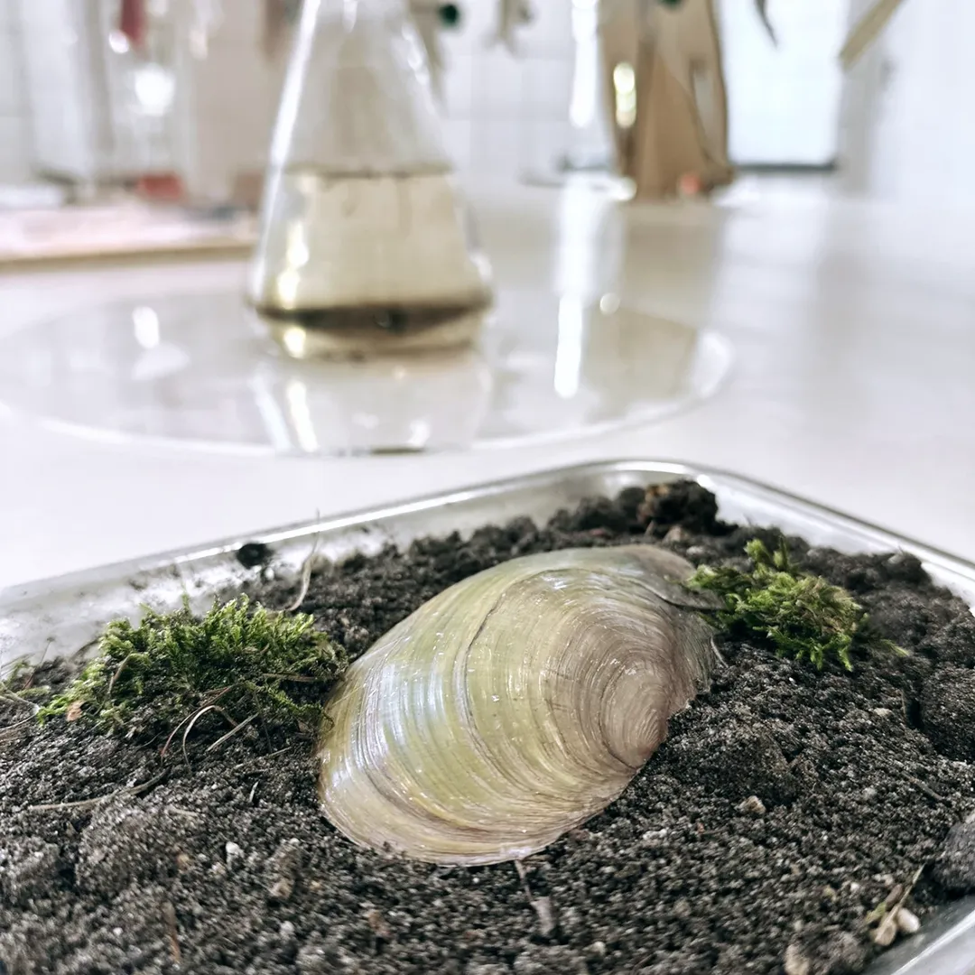 Muss-Tell repurposes invasive mussel shell waste into biodegradable acoustic shelters for native freshwater mussels, helping reduce noise-induced stress in the River Medway. Addressing climate change and sound pollution, it explores mussels as bioindicators and natural filters. By partnering with researchers, restaurants, and local groups, the project builds a regenerative system where waste supports ecosystem health and reveals environmental memory.