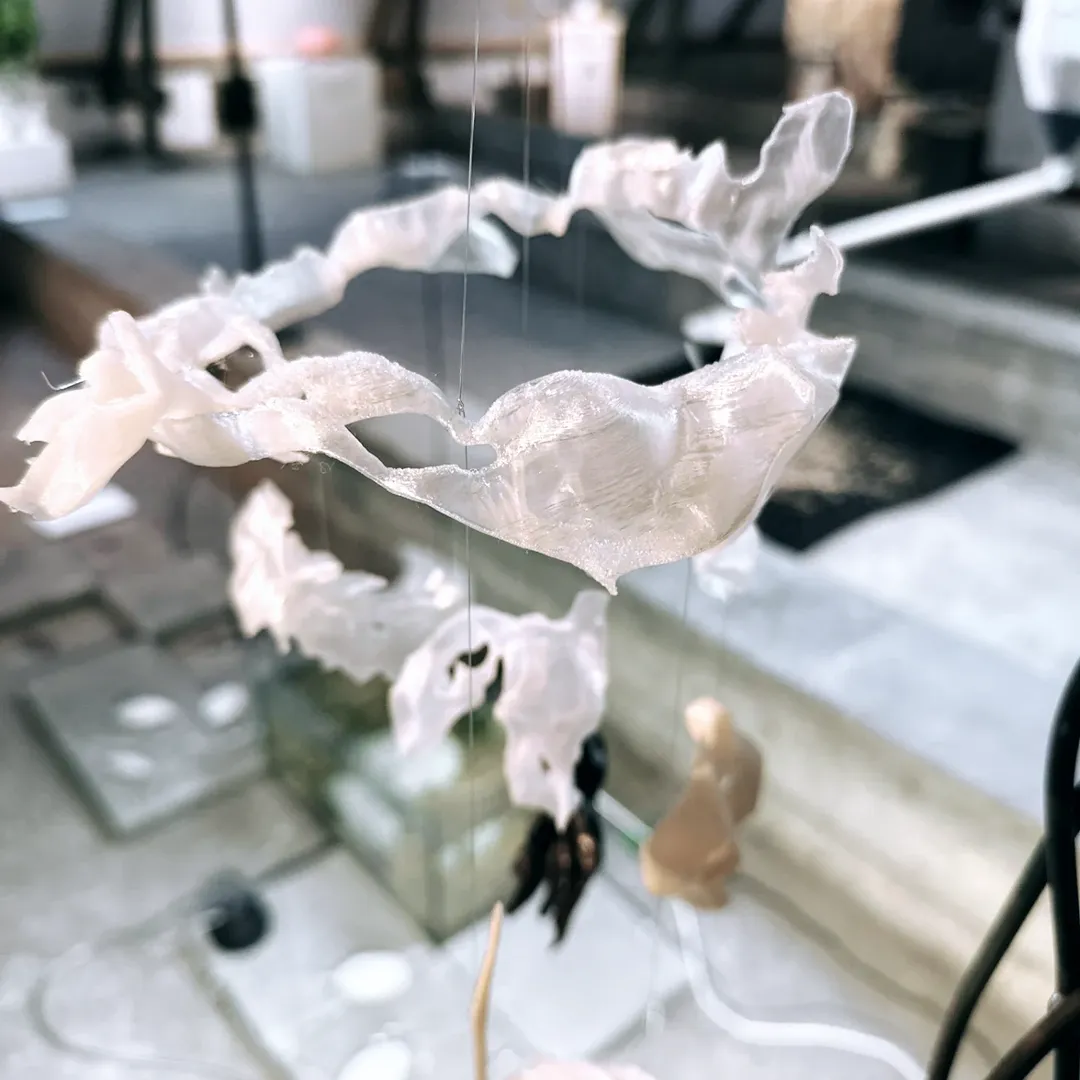 Iza Koczanowska’s installation is a blend of hydrophone recordings, noise pollution, and a sung folk lullaby to create an ASMR-like concert for endangered mussels. Visitors activate sound through shell-like interfaces, exploring non-anthropocentric listening and fragile ecologies in a poetic, speculative environment. The work suggests design as a form of care, resonance, and interspecies dialogue—asking: what might comfort sound like for a being shaped by water and vibration?